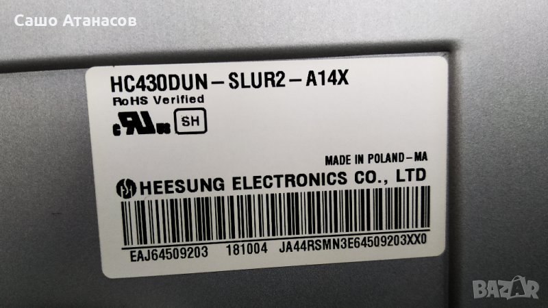 Модули от телевизор LG 43LK6100PLB със счупена матрица ( HC430DUN-SLUR2-A14X )