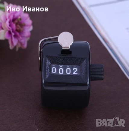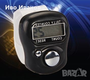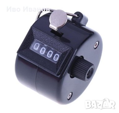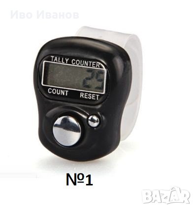 №1 Универсален, ръчно активиран брояч, незаменим при бързо или монотонно броене от типа на - технологично повтаряеми процеси . Подходящ за изброяване на хора на масови срещи и т.н.Намира приложение при авиокомпании, ресторантьорство и др. Поставя се на удобен пръст с помощта на мека регулируема силиконова каишка. Запаметява бройката след автоматичното изключване. Има бутон за нулиране. Продължително стенд-бай време преди автоматичното изключване, позволяващо спокойно да отчетете бройката.Работи с батерия AG10 /включена/.Цвят – черен.