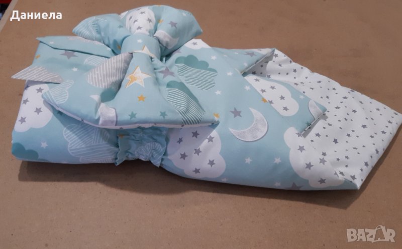 Пелена за повиване и изписване. Изработена от ранфорс и силиконова вата. Изработвам също бебешки гнезда, обиколници, спални комплекти, органайзер и др за бебето. Избор на десен. Тел 0889354990