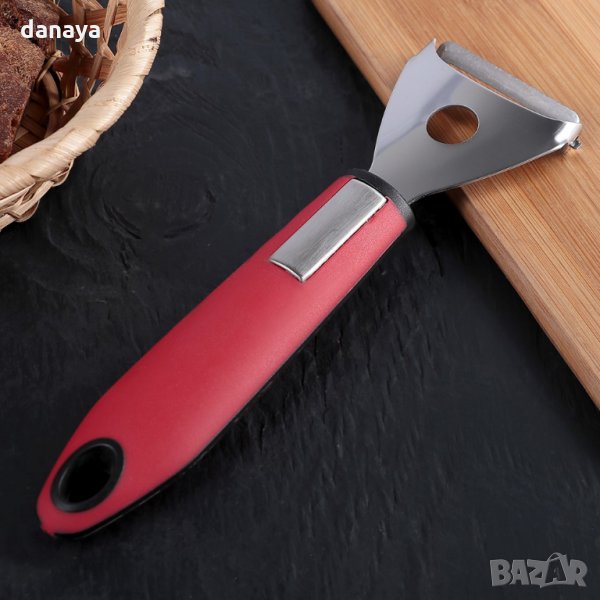 Универсална белачка за краставици, моркови, тиквички, патладжани и други зеленчуци и плодове. Острието е изработено от неръждаема стомана, а дръжката е с противохлъзгащо гумено покритие. Удобен захват, лесна за използване. С дупка за закачане, когато не се използва. Кухненски прибор, който е необходим във всяка кухня.