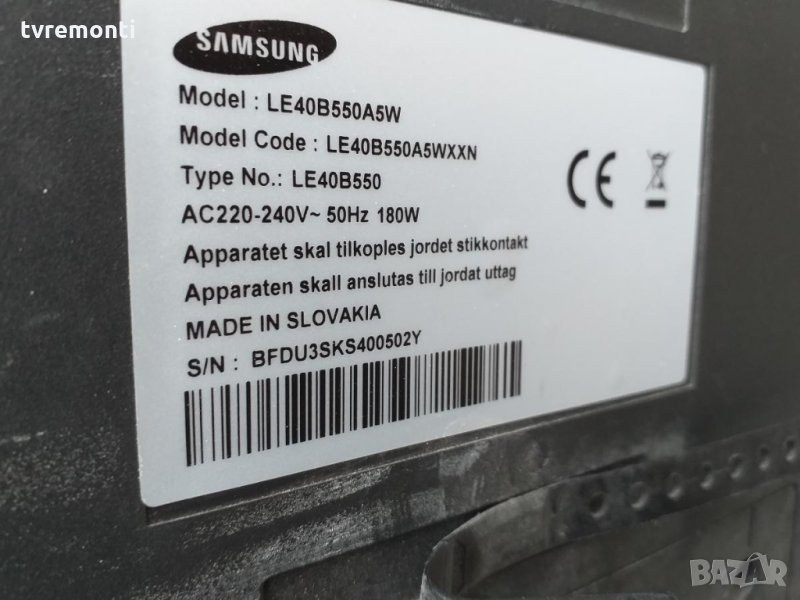 Main board BN41-01167B BN94-02668J Борда е гарантирано работещ Демонтиран от уред със счупен дисплей модел Samsung LE40B550A5W panel V400H1- L05 тесвана от нашия техник