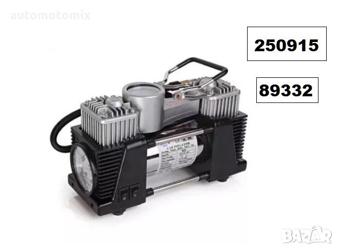 КОМПРЕСОР ДВУБУТАЛЕН ЗА ВЪЗДУХ 12V,С ИНСТРУМЕНТИ ЗА ЛЕПЕНЕ НА ГУМИ- 89332