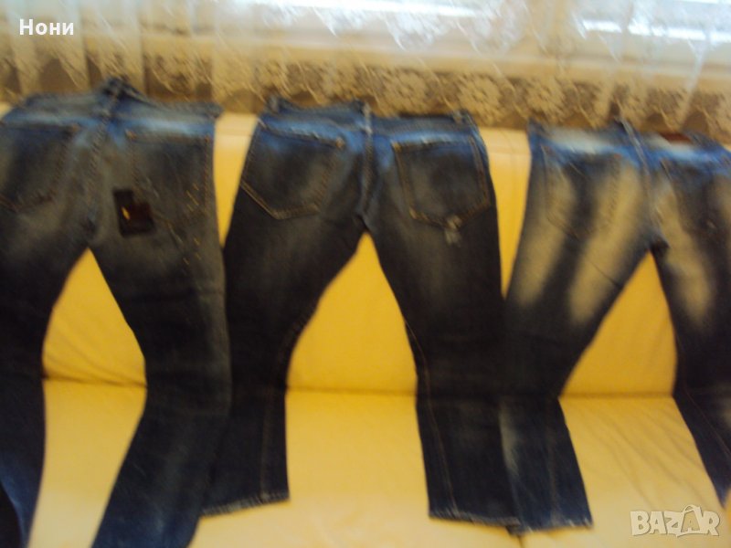 Оригинални дънки Dsquared.100 % оригинал! Купени от чужбина! 2 броя са 80 см в кръста. На тях пише размер 46 по тяхната номерация! А третият е по-малък 74 см. Състояние до Ново, защото човекът замина да живее в чужбина и по-вече не са носени от друг. Нямат забележки. Обувани до пъти. Може и поотделно да се продават. Цената на 1 брой е 110 лева.