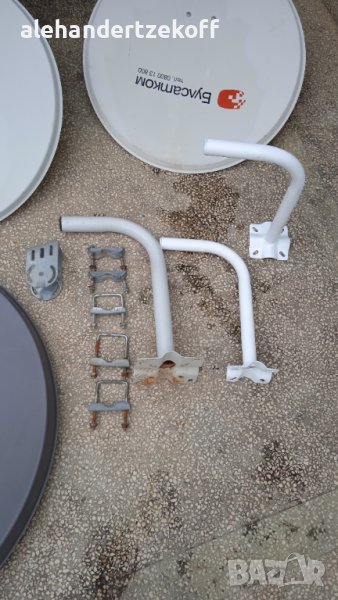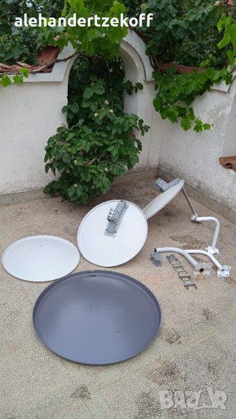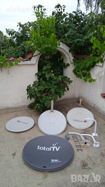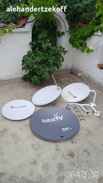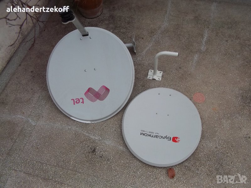 Чиния с диаметър 69см, Булсатком’’- само чиния и основа за монтаж без оборудване- 40 лв; необорудвана нова чиния, Булсатком” 69 см - 30 лв - продадена ; чиния с диаметър64см оборудвана -40лв; Две стойки за чиния в отлично състояние по 15 лв за брой - продадени , голяма стойка - 20 лв - продадена ; необорудвана чиния ,,Total ; нова с диаметър 88 см - 70 лв; регулируема мачта за антена от алуминий и стомана с максимална дължина-270см и минимална дължина-207см, която може да се монтира в къмпинг, върху каравана, автомобил, палатка, покрива на къщата, бунгало и т.н.-50лв. Цените може да се коментират.