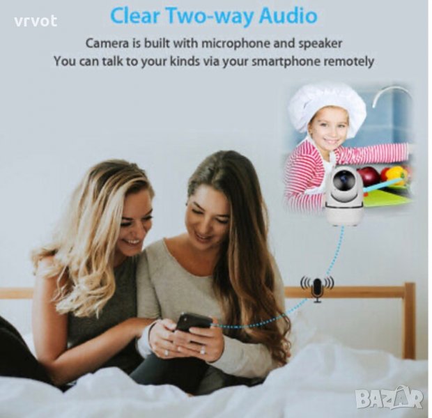 Камерата е оборудвана с микрофон и високоговорител. Благодарение на тях можете да чувате какво се случва в близост до камерата и да изпращате гласови съобщения.