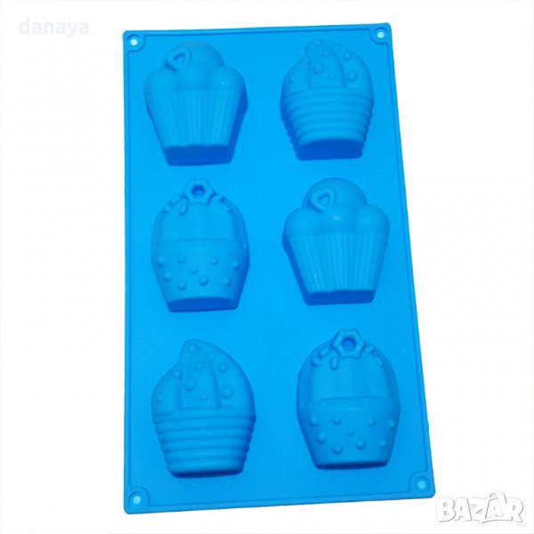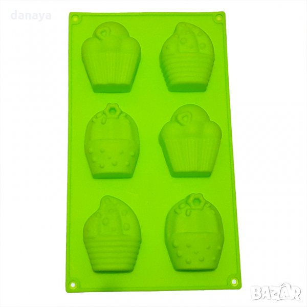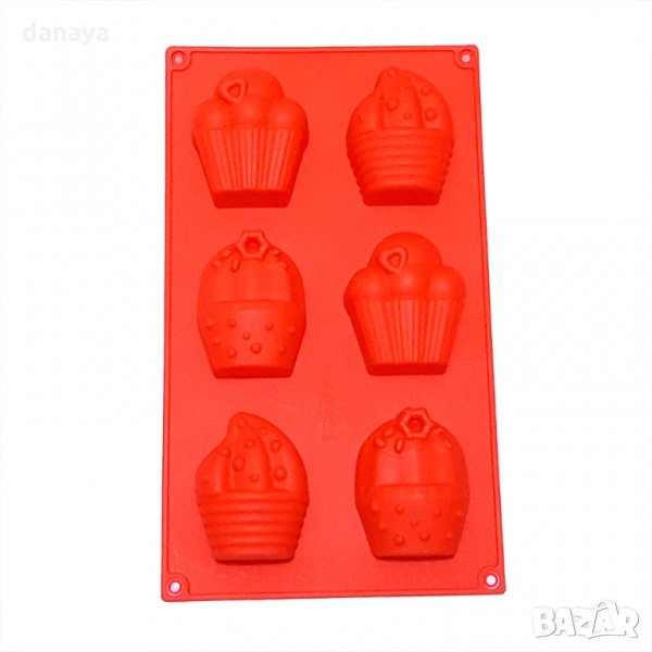 Силиконова форма за печене или замразяване с 6 гнезда. Формата е подходяща за приготвяне на мъфини, кексчета, вкусни мини сладкиши с форма на кексчета с много крем. Подходяща е и за студени сладкиши, можете само да поставите течен шоколад и да го замразите във фризера. Издържa от -40 C до + 230 C.