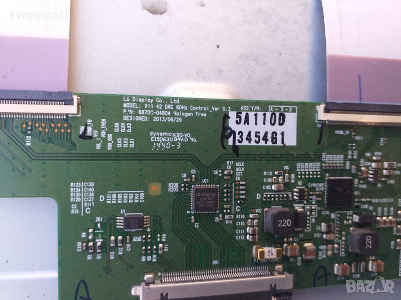 T-CONTROL BOARD 6870C-0401C T-CONTROL BOARD 6870C-0401C LG 32/37/42/47/55LM611 FHD TM120 VER0.3 PANEL IC TL3250E TPS65178TI тесвана от нашия техник