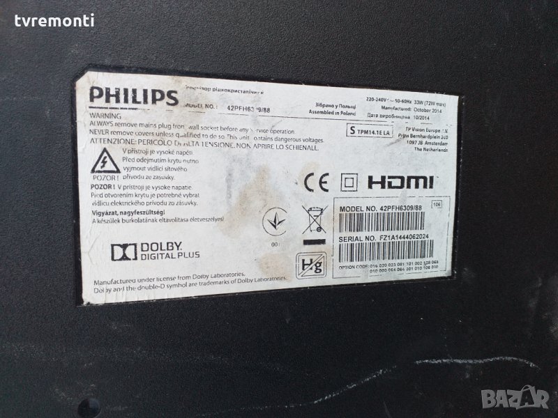 Платка POWER SUPPLY 715G6353-P01-000-002H POWER SUPPLY 715G6353-P01-000-002H ADTVD1210AB9 42PFH6309/12, 42PFH5609/88, PANLE LC420DUN IC K13A650 817 XA2202 68MF 450V SC1S311 LT3246 LD7591TGS Power Board (захранващи платки) тесвана от нашия техник