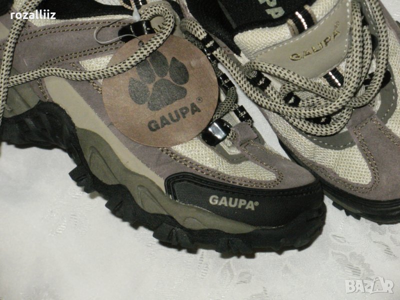 Маратонките са на GAUPA, нови с етикет. По номер са 32, дължина на стелката-20,5см. Модела е унисекс. Цветовете са като на снимките с метални кукички за връзките. Материалите са естествена кожа и малко текстил. Отпред са допълнително гумирани и са двойно шити за подметката. Имат лого отпред отзад и на езика.