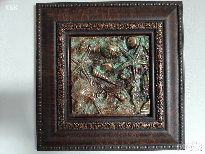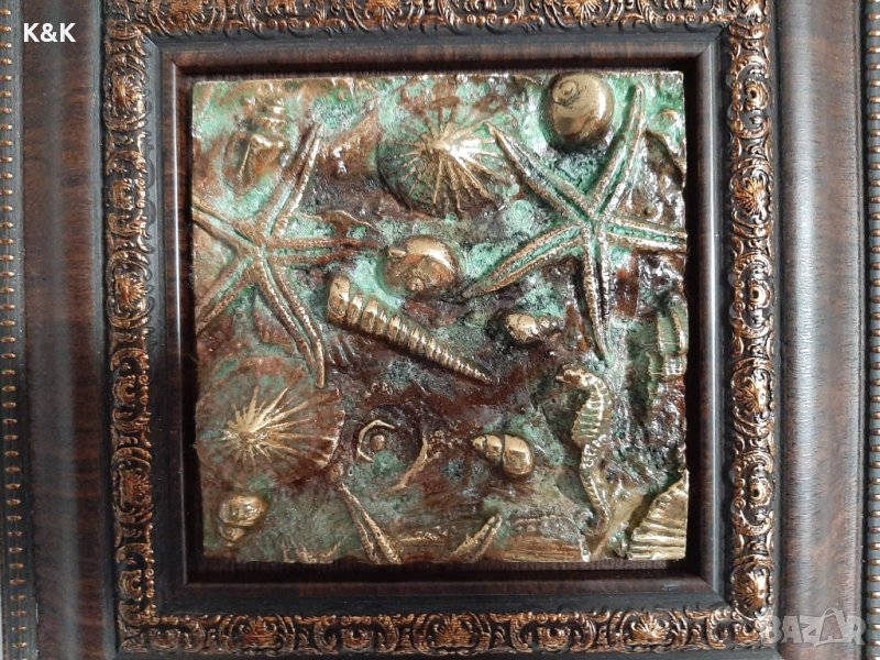 Бронзова пластика, ръчна изработка с наименование "Морско дъно". Размерите са 25/25 см.
