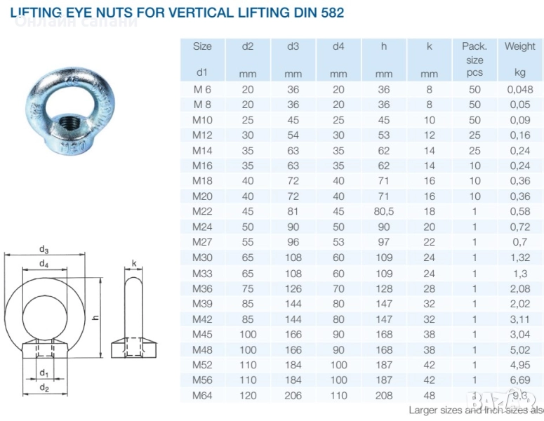 Ринг гайки и ринг болтове с общо предназначение DIN582,