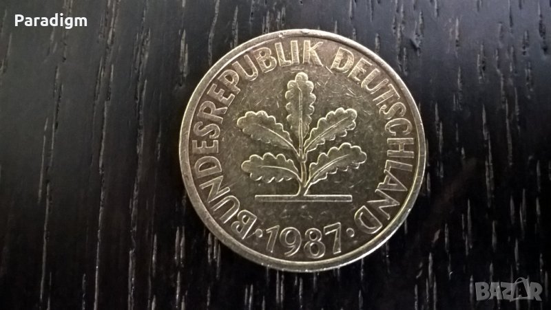 Монета - 10 пфенига от 1987г.; серия J