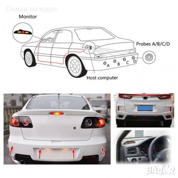 препятствие с ултразвукови сензори, монтирани в задната броня на колата и