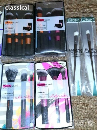 Нови професионални четки Real Techniques различни сетове , модели и единични четки. Внос от Англия. Цени и модели описани по -долу с добавен линк с видео към всеки продукт , за да видите как се използват.
