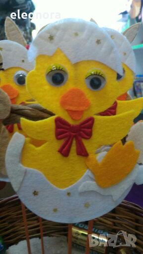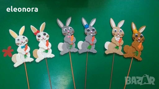 Ръчно изработени зайчета от филц на бамбукови пръчки.Подходящи за декорация,за Великден...