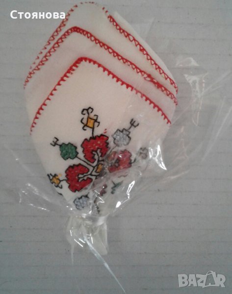 Продавам памучни и копринени дамски и мъжки носни кърпи от 70-те до 90-те години на миналия век, колекционирани от сватбени тържества, запазени в много добро състояние: 1) Дамски памучни кърпички 2 бр. във формата на букетче - Цена 5 лева за двете и мъжка памучна кърпичка във формата на пура - Цена 2 лева (показани общо на снимка 2); 2) Копринена ръчно бродирана кърпичка сгъната във формата на букетче (Снимка 3 и снимка 4) - цена 7 лева. 3) 22 броя памучни разноцветни дамски кърпички от сватба (на снимка 5 са показани 14 броя и на снимка 6 са показани - 8 броя). Цена на целия комплект от 22 броя дамски кърпички - 33 лева;