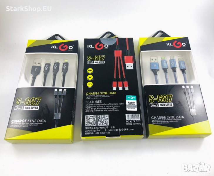Лукс 3в1 Качествен кабел Type-C iPhone MicroUSB Samsung Huawei зарядно