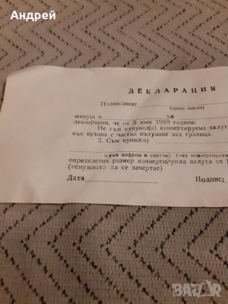 Бланка Декларация за покупка на валута от соца!