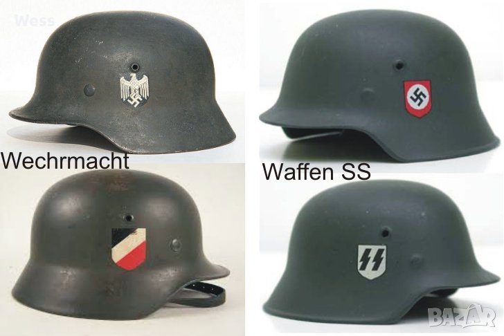 Комплект от две водни лепенки (лява и дясна) за каски на Вермахт, Луфтвафе, войски на СС и елитните СС части "Тотенкопф" и "Адолф Хитлер".