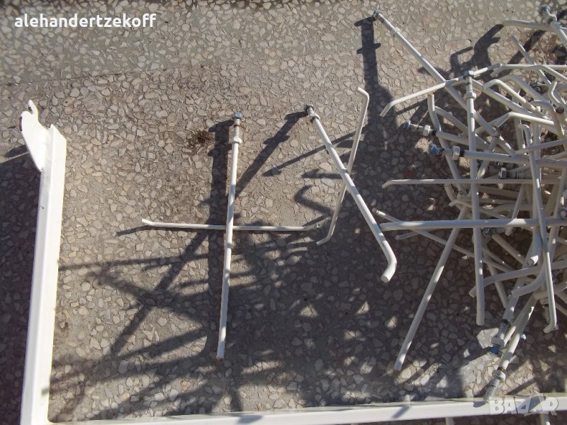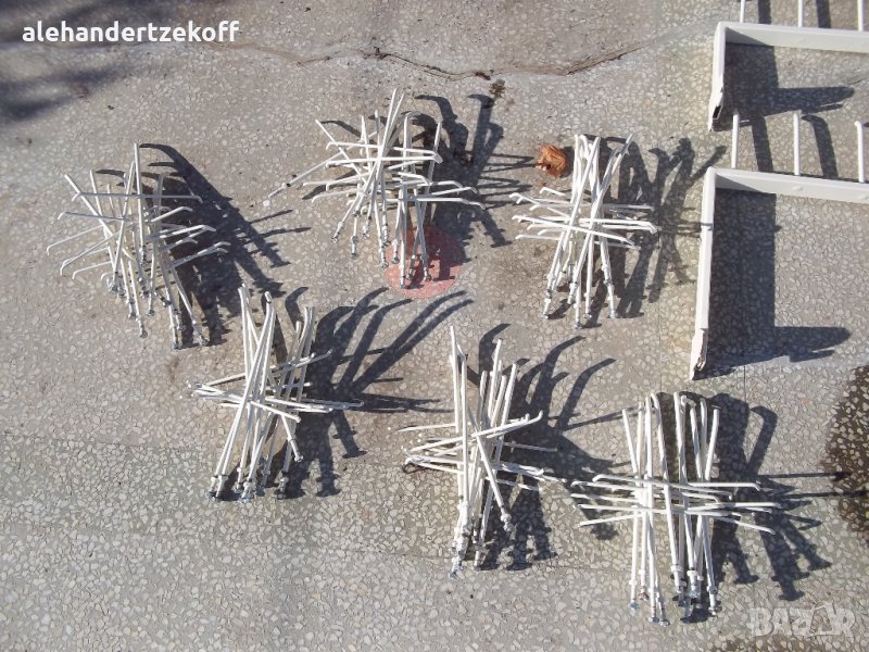 Размерите на носачите от първите две снимки са 95/15/12см-2бр и 95/27/12см-1бр и съответно-10лв и 15лв за брой, носачите са за щендер за колани -продадени . На 3,4 и 5 снимка са 63бр детайли /шишове/ за стойки за очила по 1лв за брой, стойките са показани на 6и7 снимка.Цените може да се коментират.