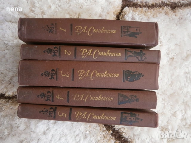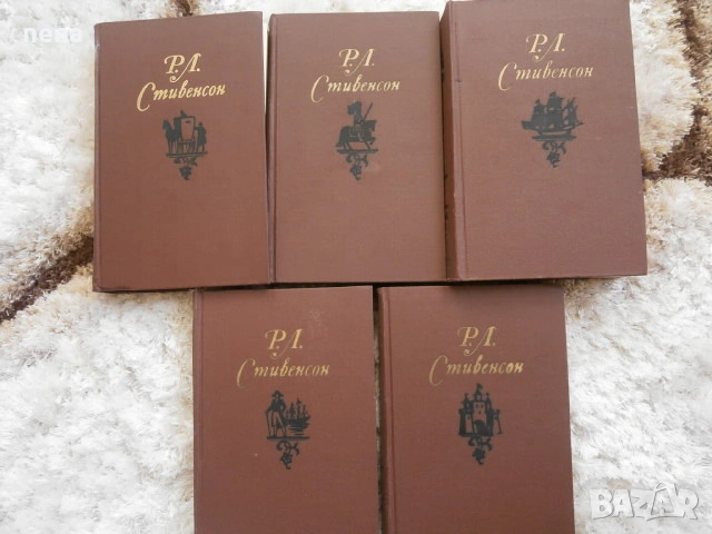 5 тома на Р. Л. Стивенсон. Твърди корици, нечетени. Публикувано е и съдържанието - 5евро.