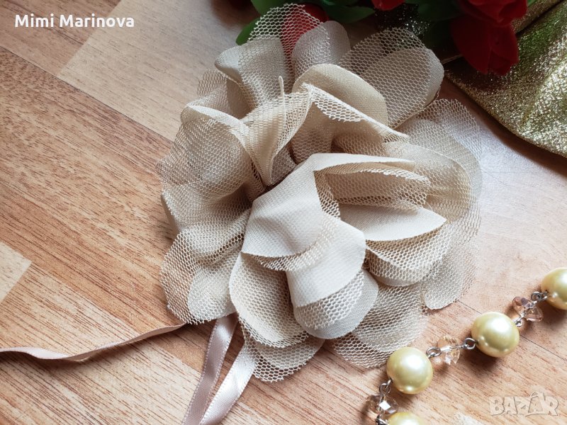 Колие с перлички + подарък брошка Цвете в същият цвят