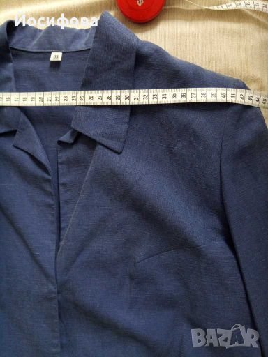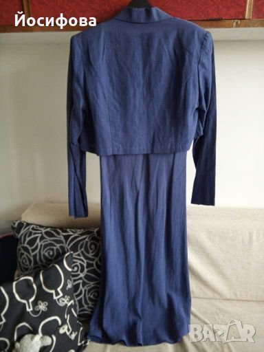 Шикозен дамски сет в две части - рокля & късо сако. Изключителна материя - лен и вискоза, пада прекрасно по тялото, леко еластична, поради специфична кройка. Няма забележки - като нов. Малък ми стана за съвсем кратко време.