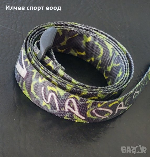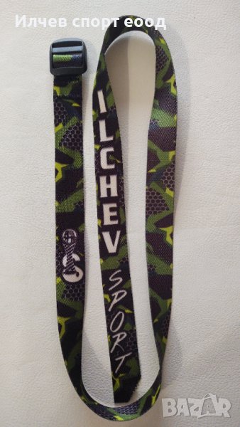 Каишки за вързване на ръцете при разрив на захвата при игра на канадска борба.Здрава 100% полиамид катарама с 100% полиестерен гладък и същевременно много здрав колан.Сублимация 3D камуфлаж,фирмено лого с надпис.Размери: