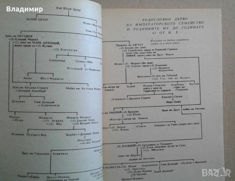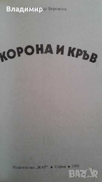Продавам в перфектно състояние, неотваряни за четене, като нови книгите: 1. Книга Първа "Корона и кръв" - Част 1 и Книга Първа "Корона и кръв" Част 2, Александър Беровски,1993 г. Изд. "Жар", меки корици - цена 15 лева за двете книги; 2."Нощем с белите коне", Павел Вежинов, Изд.на ОФ, 1980 г., меки корици - цена 5 лева; 3."Аз, Клавдий", Робърт Грейвз, Изд."Зодиак' ВН" 1991 г.,меки корици - цена 6 лева; 4."Авантюрите на Гарибалди", книга 1, Световноизвестен аноним, Изд."Борина" 1992 г. меки корици - цена 5 лева; 5."Via Mala Пътят на злото"- том1,от поредицата "Неостаряващи романи", автор Йон Кнител - цена 5 лева.
