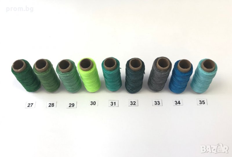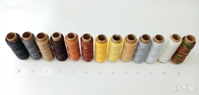 Конци за кожа, кожарски, сарашки парафинирани макари. - 6,50 лв /3,32 € - парафинирана макара с дължина 50 м; дебелина на конеца 1 мм; 100 % полиестер; средна степен на парафиниране.