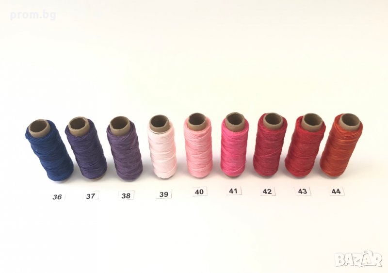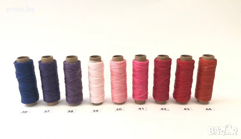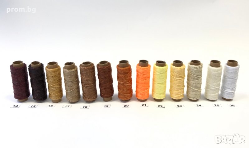 - 5 лв/ 2,56 € - парафинирана макара с дължина 30 м; дебелина на конеца 0,8 мм; Налични цветове: 3 (св. кафяво); 5 (кафява гама); 10 (св. сиво); 15 (бордо); 16 (бежово); 17 (екрю); 18 (кафява гама); 19 (кафява гама); 20 (кафява гама) 23 (св. бежово); 25 (бяло);