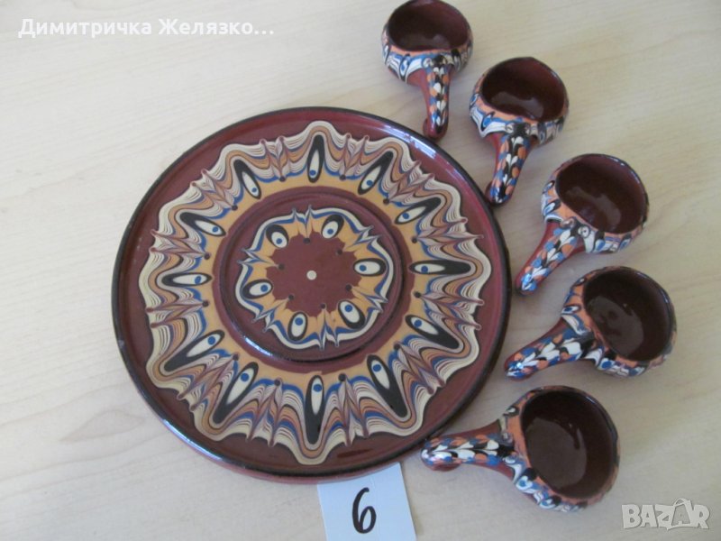 6. Чаши за ракия на табла - 5 чашки - 8 евро