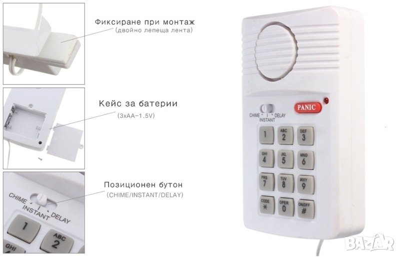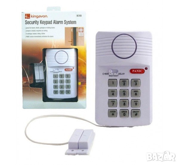 Подходящ за всички видове врати, гаражи, плъзгащи се врати и прозорци. Осигурява лесно откриване на натрапници, които се опитват да влязат в дома ви, като регистрират влизането си. Включването и изключването на устройството се извършва чрез въвеждане на код на клавиатурата.