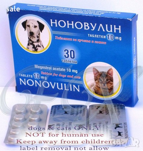 Котки: за прекъсване на еструса - по 5 mg/котка ( 1/2 таблетка ) за 8 последователни дни, започвайки с първите признаци на еструса ; за отлагане на еструса - по 2,5 mg/котка ( 1/4 таблетка ) 3 пъти седмично през целия естрален период ; при сатириазис при котараците - по 2 mg/kg m. за 30 дни ( до изчезване на признаците ).