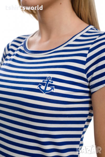 Нова дамска класическа моряшка тениска с трансферен печат Котва