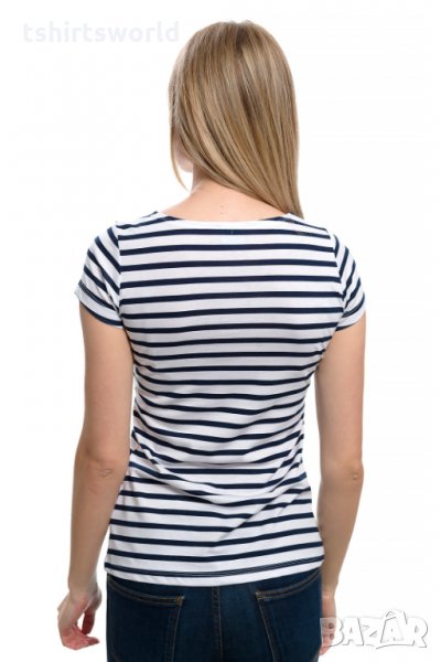 Нова дамска моряшка тениска на тъмносиньо/бяло райе