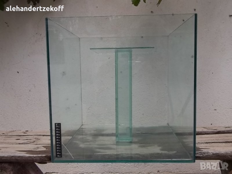 Терариумът може да служи и за аквариум, има термометър и е с много прецизна изработка от кристално стъкло с дебелина 5мм и окантовани повърхности, става за влечуги, гризачи, насекоми, костенурки, риби. Има колона- стойка върху, която да се подслоняват. Има леко спукване в единия ъгъл /на една от снимките/, но не тече р-ри 40/40/40см- 64литра- 70лв / правен е по поръчка за 130лв/. Цената може да се коментира.
