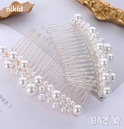 Клипс фиба тип ТИАРА с много перлички аксесоар за коса прическа сватба бал и др → Обява 27954186