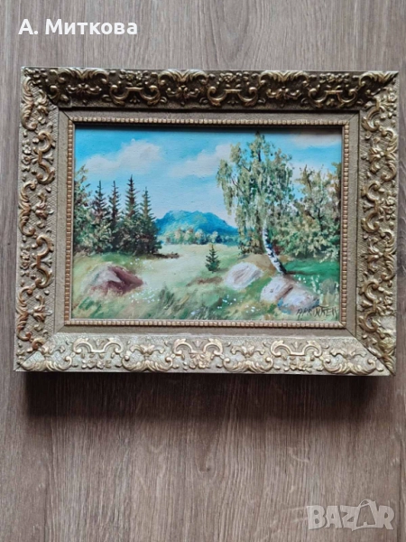 Снимка 10 -Рамка от масивна дървесина , картина с маслени бои върху платно . Външен размер 38/33 см , вътрешен размер 28,5/23 см. Цена на рамката 30лв, Цена на картината 20лв.