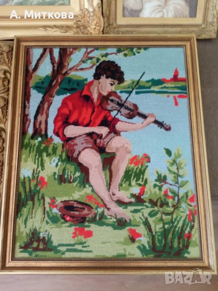 Снимка 4. Цигулар до езерото - цена на рамката 45лв( без стъкло е) . Външен размер на рамката 67,5/55,5см