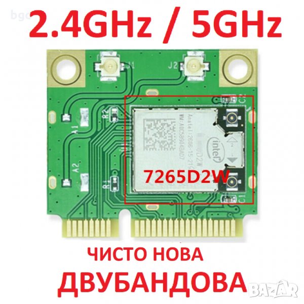 Чисто Нова Двубандова Wireless-AC 7265 Intel IT-7265HMW 7265ac 7265D2W 2.4G/5Ghz 802.11ac 867Mbps MINI PCI-E 2x2 WiFi Card Dual Band MINI PCI-E WIFI Card 7265ac с Bluetooth 4.0.