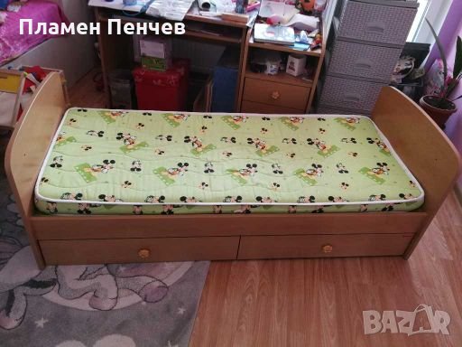 Много запазено детско легло с люлка, има общо 5 чекмеджета и място за повикване. Давам го с два матрак, единият е от мемоари пяна, люлката е разглобена затова не съм я снимал.