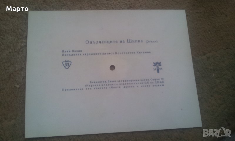 Балкантон. № 1 – опълченците на Шипка № 2 – Малкия принц, № 3 – Химн на НРБ, № 4 – Пангюрските въстаници, № 5 – Бригадирски марш. Чисто нови непускани дори по веднъж. Цената е по 12 лв за брой. За всички 5 бр. цената е 50 лв и плика е бонус. 131ми. Изпращам по Еконт през сайта на Базар бг. Ползвате 10% отстъпка
