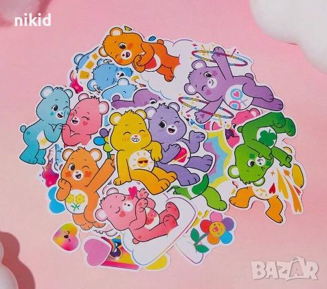 40 бр Грижовните мечета The Care Bears малки самозалепващи лепенки стикери украса картонена торта → Обява 27963302