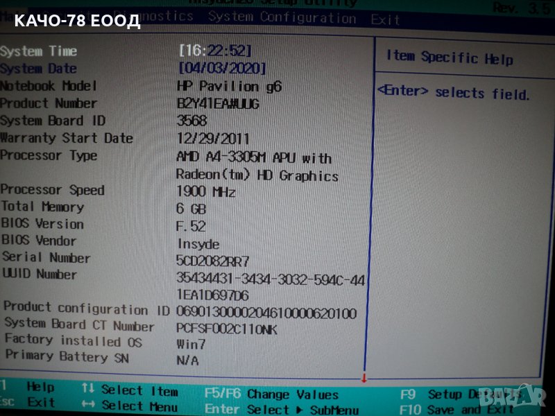 Лаптопът се продава на части. Дънната платка на лаптопа