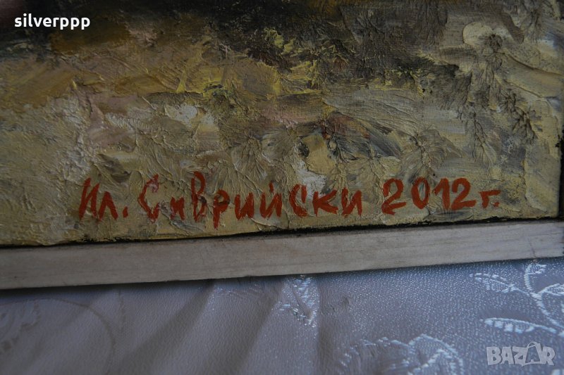 Масло върху платно. Размер 50 см х 50 см.Платното е в отлично състояние. Липсва едната летвичка от рамка. Вижте в ляво ! Получавате тази от снимките. Изпращам с опция за преглед.
