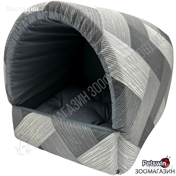 Уютна Къщичка/Легло - за Куче/Коте - S, M размер - Сива разцветка - PetsWin