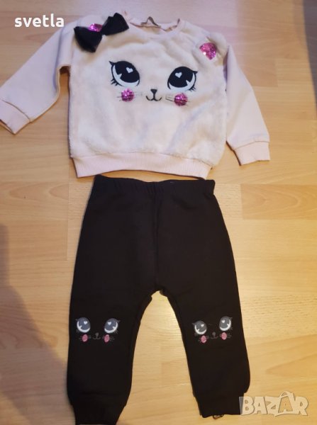 Страхотно комплектче за момиченце,по етикет е 86 размер,но според мен е умалено или зависи от детето,на нас долнището ни късееше,затова си остана ново,носено е само веднъж с ботушките не личеше,а блузката 2 пъти,веднъж я сложехме и с дънки,много е ново и сладко!