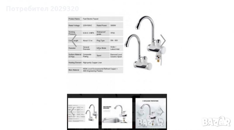 Този проточен бойлер на пръв поглед изглежда като обикновен кухненски смесител за топла и студена вода, но вграденият в него мощен нагревател ще ви осигурява сигурно и надеждно топла вода, без да се налага да чакате за загряването и, както при класическите бойлери.Чудесно пасва на всяка кухня или баня, може да се използва като смесителна батерия. Намира широко приложение за всякакви ежедневни дейности в кухнята или банята.В смесителят е вграден проточен бойлер, с нагревател с номинална мощност от 3000вата. Загряването на водата в разширителният съд отнема една 3 секунди. Благодарение на мощния нагревател, водата може да достигне температура от 30 до 40 градуса през зимата, и от 30 до 70 градуса през лятото.