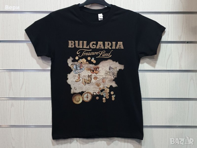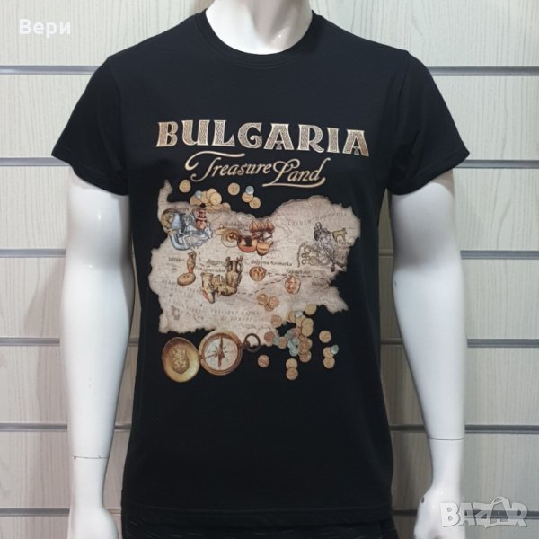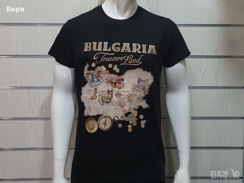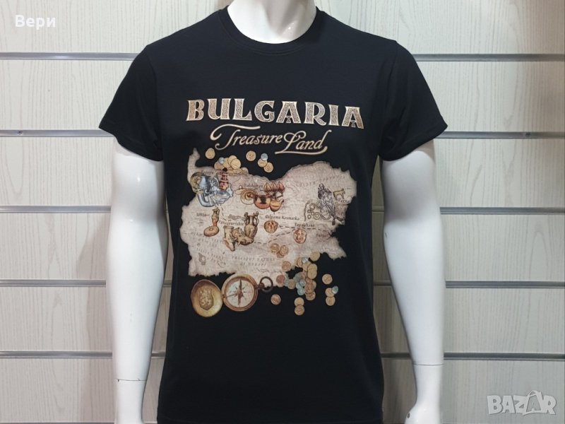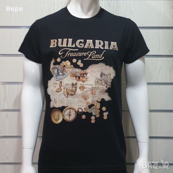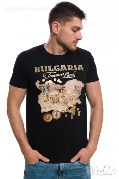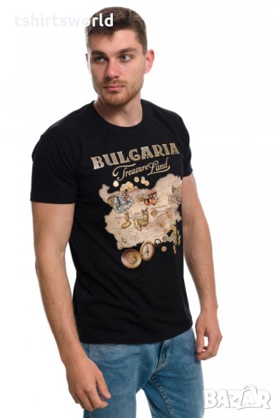 Нова мъжка черна тениска с трансферен печат България - Treasure Land (Земя на съкровищата)